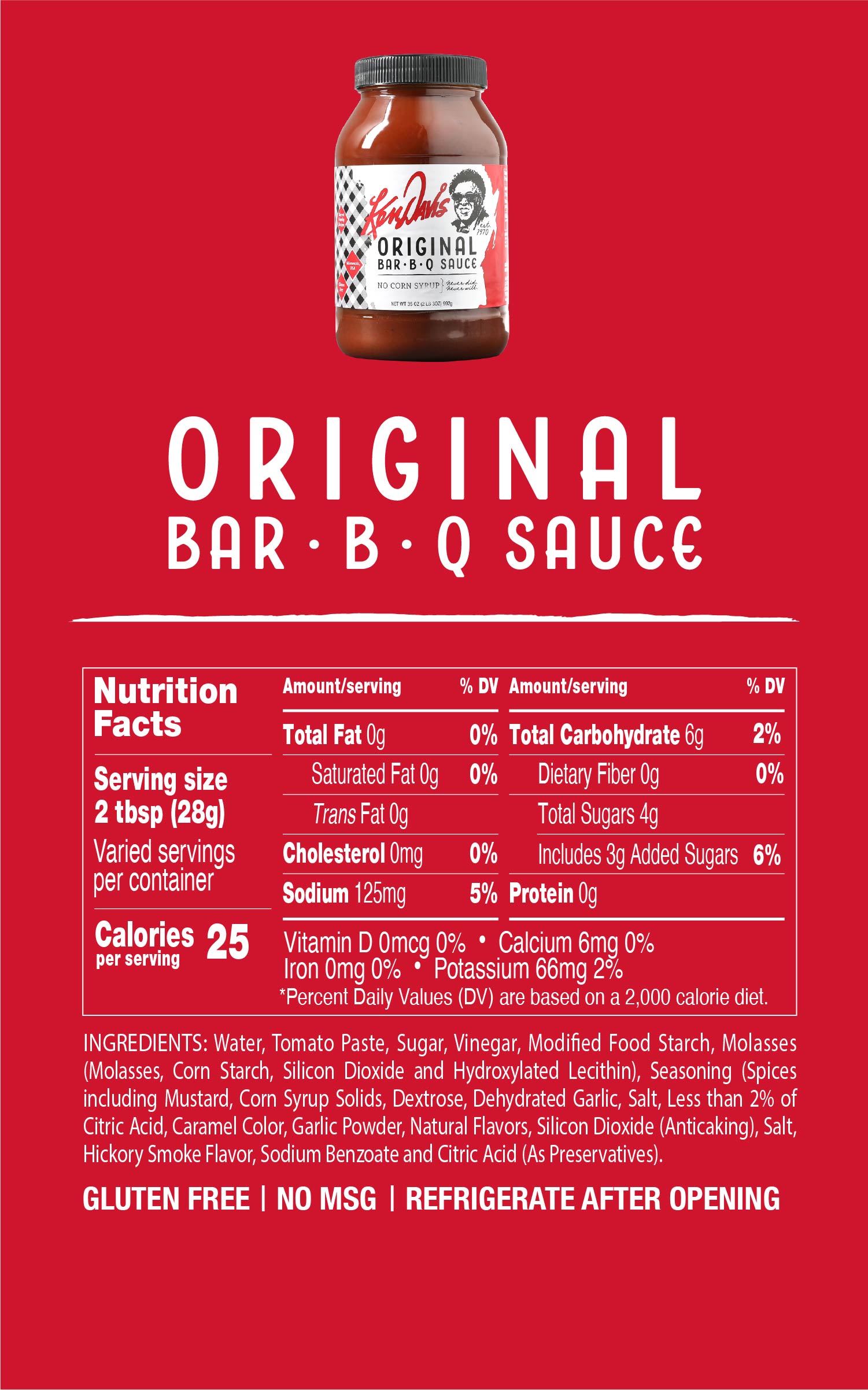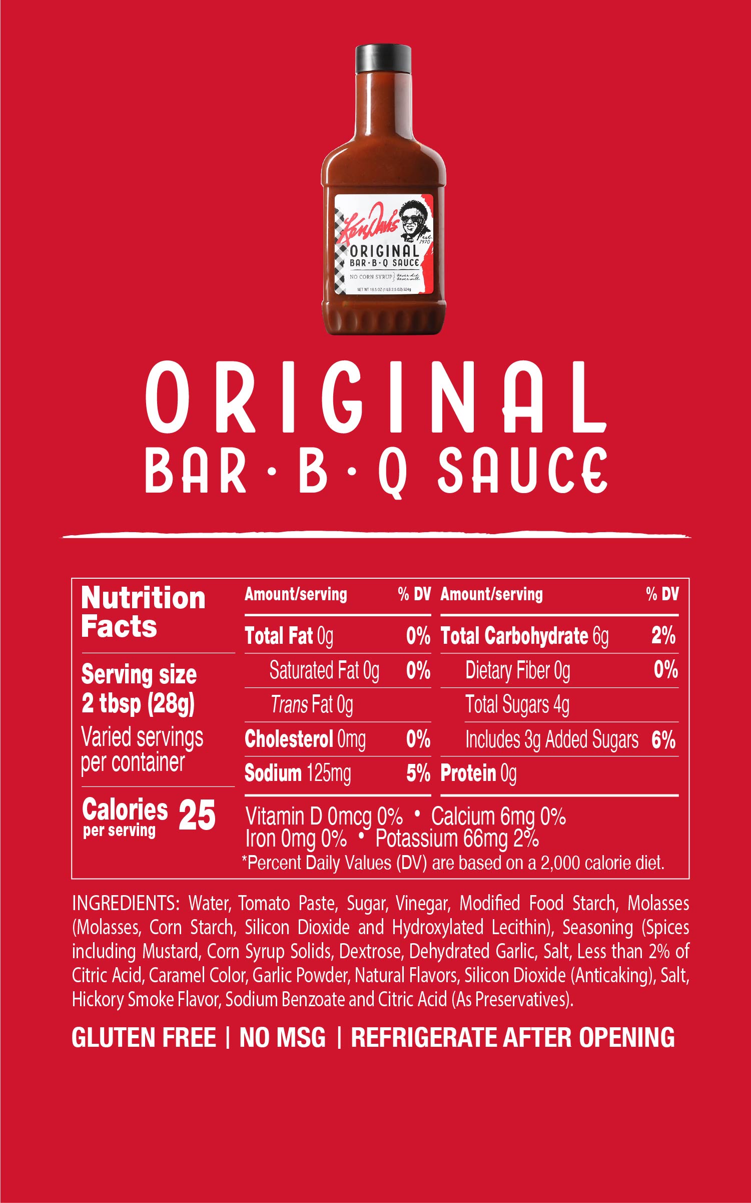 Size: 18.5 ozA favorite for 55 years, this is the finest, most well-rounded barbeque sauce you can find, with the perfect balance of flavors and half the carbs and sodium of most national brands. And because there’s no corn syrup, Ken’s Original Bar-B-Q Sauce caramelizes beautifully on the grill and in the oven.