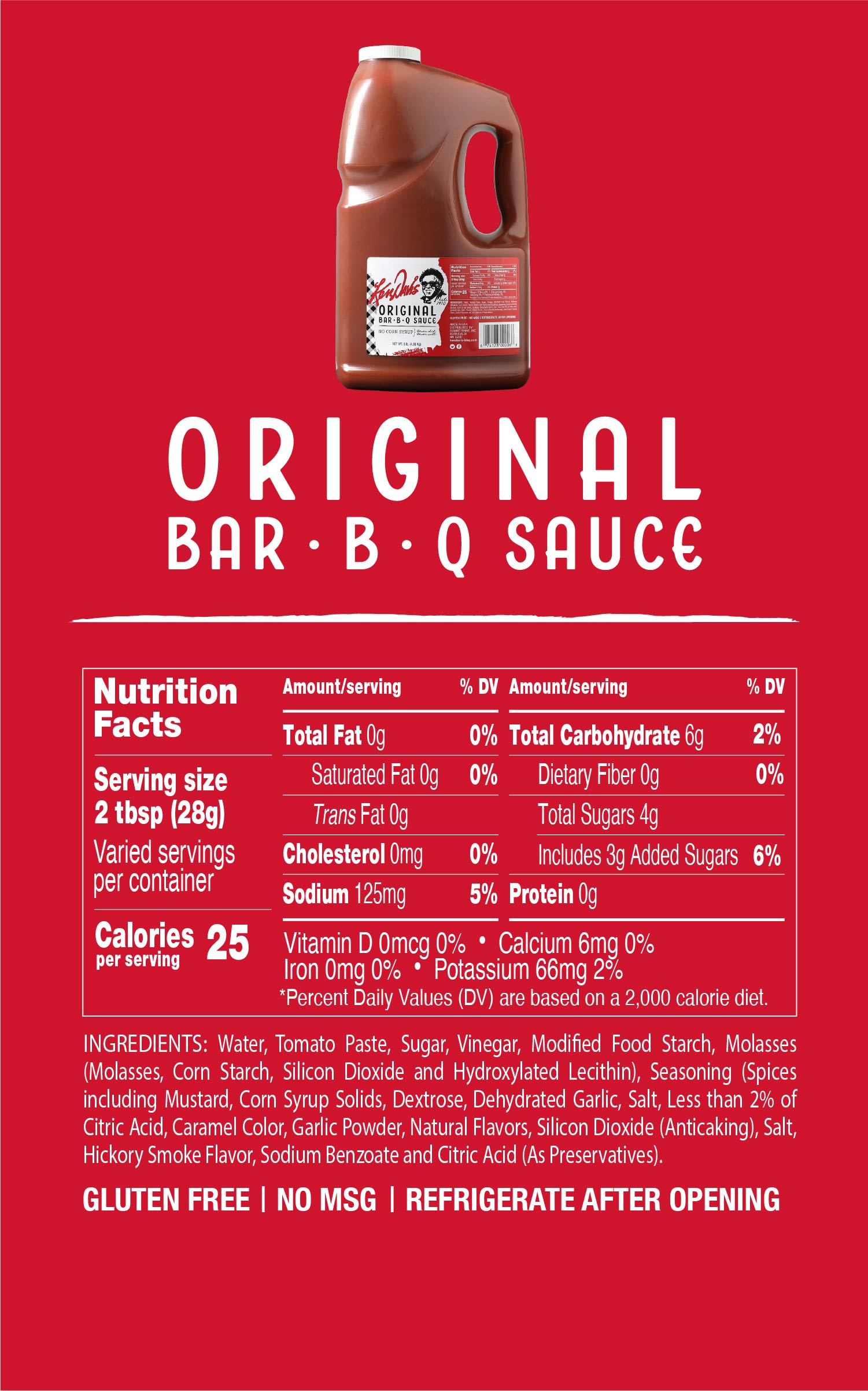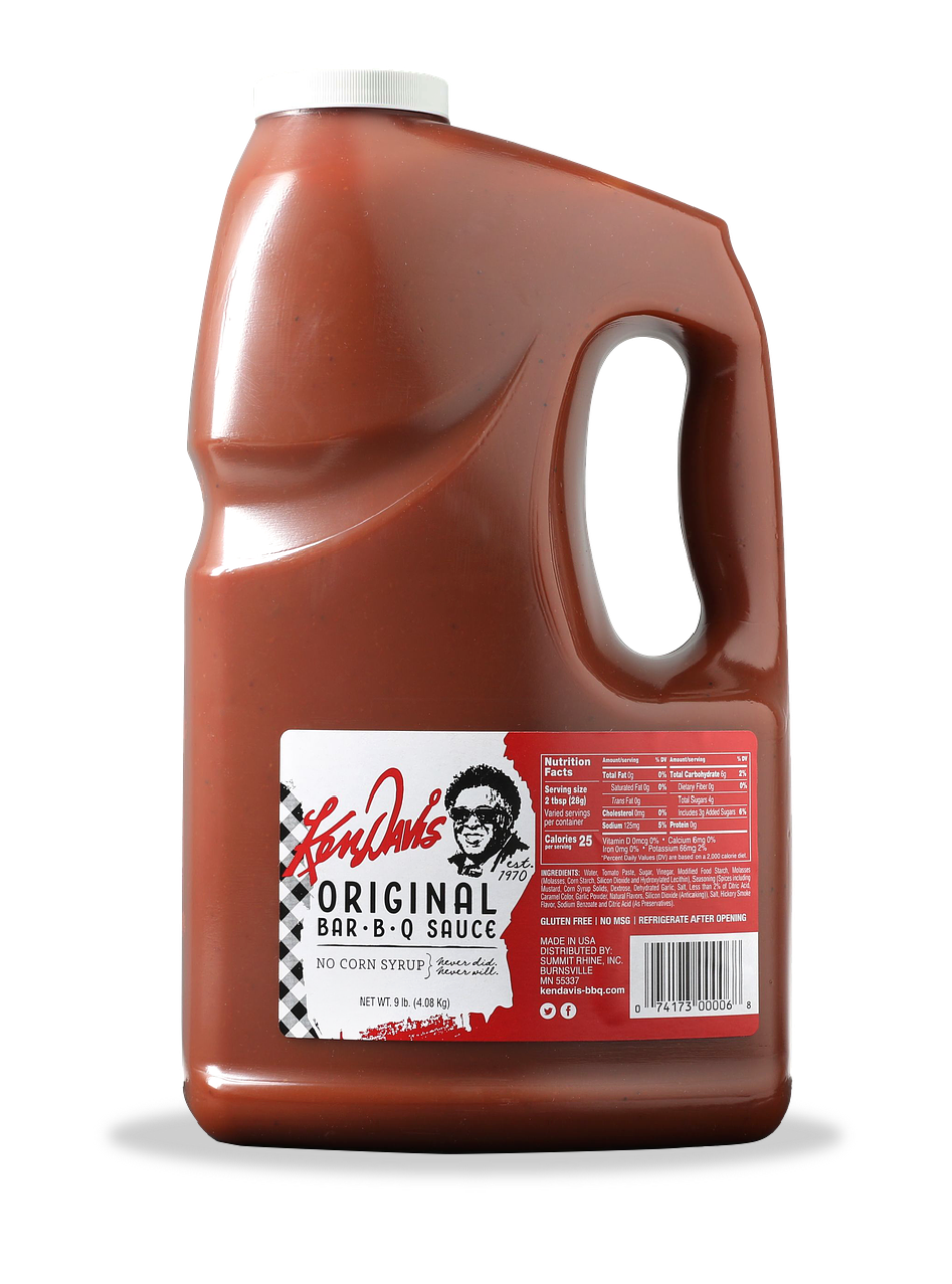 Size: 9 lbMore of what you love! Slather your BBQ with America’s finest, most well-rounded sauce. Balancing robust, slow-cooked flavor with no corn syrup and half the carbs and sodium of most national brands, Ken Davis Original Bar-B-Q Sauce has delivered full-on flavor for more than 50 years.